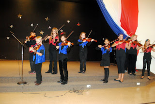 I can't think of anything better to do on an election day (besides watching the polling on election evening) than to go to a Patriotic Concert. Parker is part of a Performance Strings group where he gets to sing, dance, and play the violin. Parker is in his element in this group and it was so FUN to watch. He has only been playing the violin for 5 months and had songs memorized and was moving around while playing and singing. My hat is off to my future "young ambassador"! Loved it, Parker, and can't wait for the Christmas Concert!